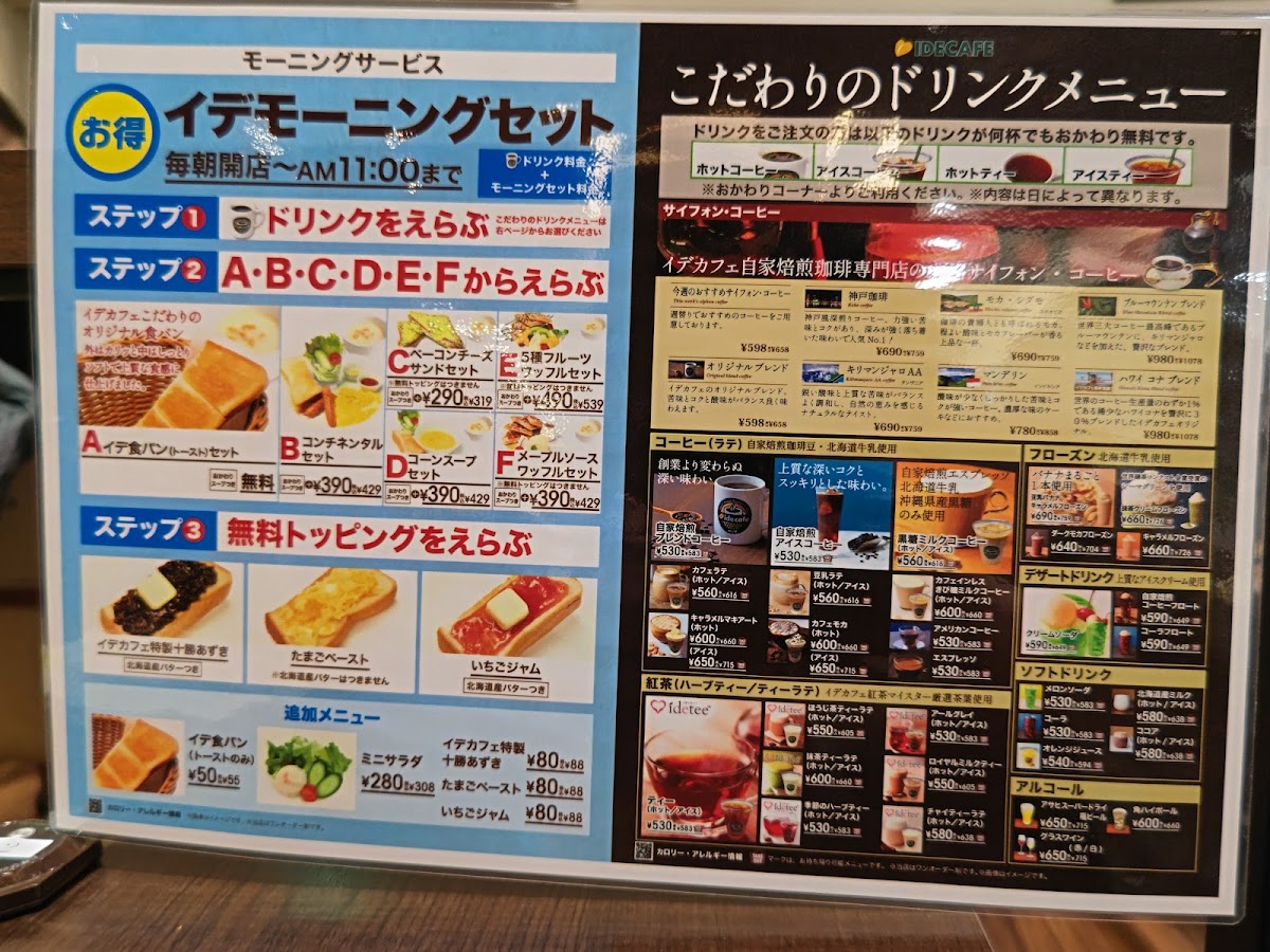 ide cafe イオンモール柏店 Menu